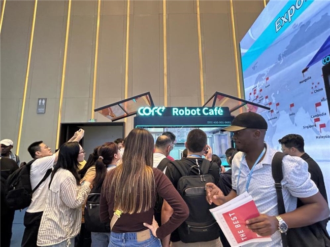 完美结合秋季广交会的2025年度主题,COFE+现场推出了“机器人拉花定制款”、“COFE+3D打印定制款”、“COFE+饮品口味定制款”……通过卓越的机器人拉花技术、3D打印技术,在咖啡奶泡上呈现出展会的LOGO、本届主题的图案……这些别出心裁的文化定制,成为观众打卡留念的“科幻周边”。第6代COFE+能根据不同场景,创意性完成定制化口味、花型、打印方案。例如:在景区打印风景图画,在办公区打印品牌标识,在名胜古迹打印唐诗宋词,在花园公园打印绿草萌宠……这一刻,咖啡不再只有饮品的温度,而且还有情感的深度,还有人文的风度,让机器人咖啡馆成为连接人与场、情绪与情景的“新社交空间”。